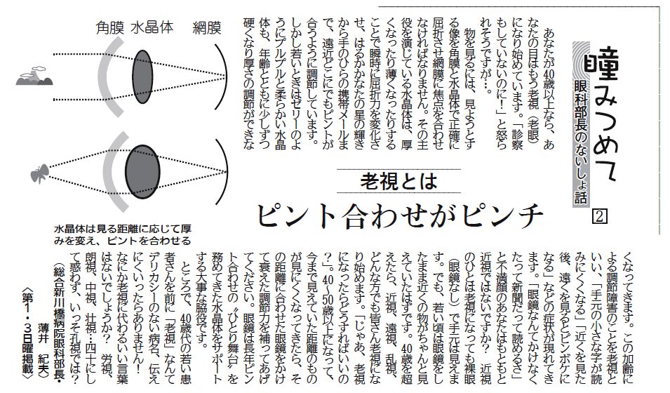 瞳みつめて 第2回「老視とは~ピント合わせがピンチ」