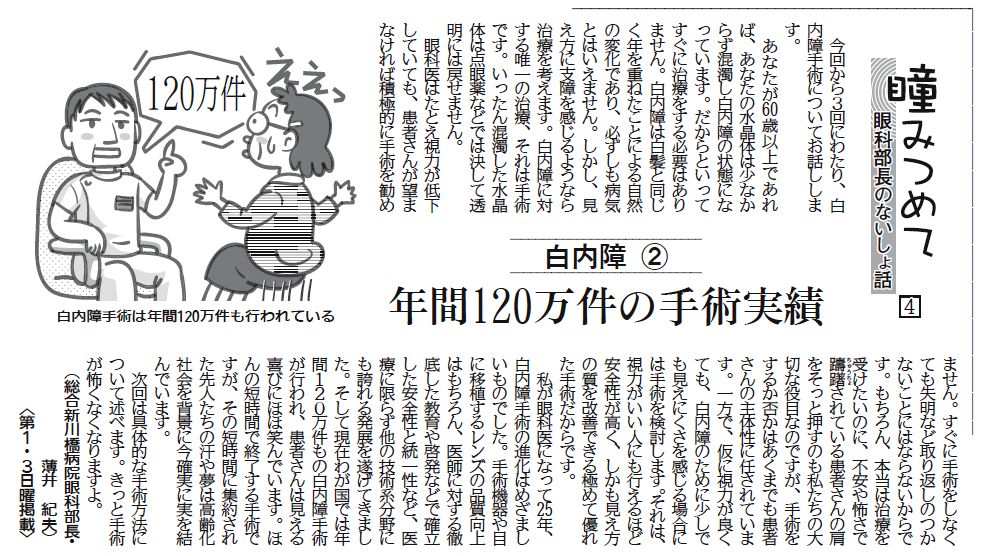 瞳みつめて 第4回「白内障②~年間120万件の手術実績」