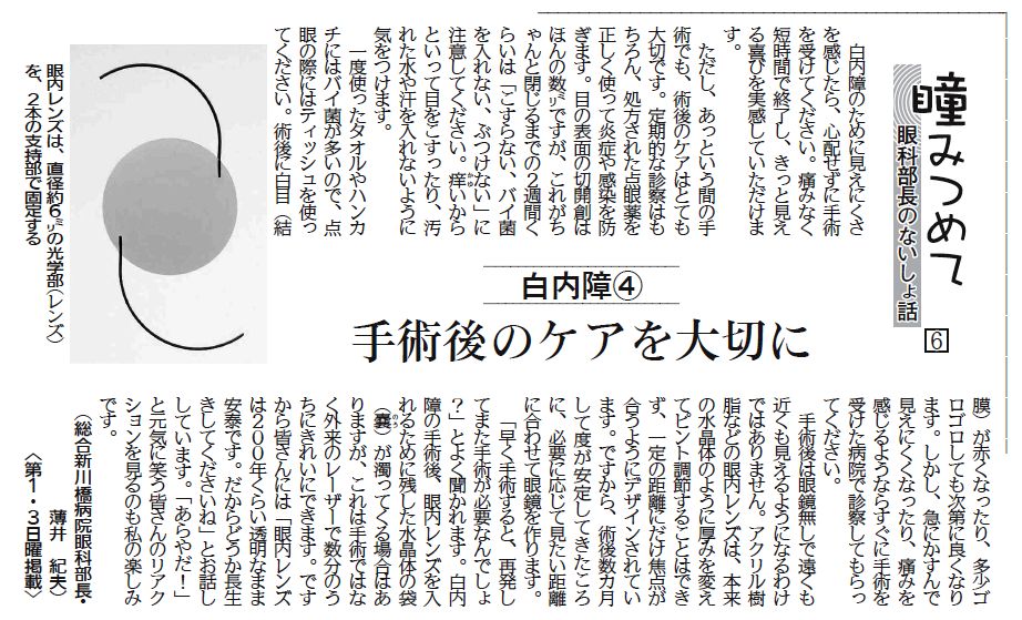 瞳みつめて 第6回「白内障④~手術後のケアを大切に」