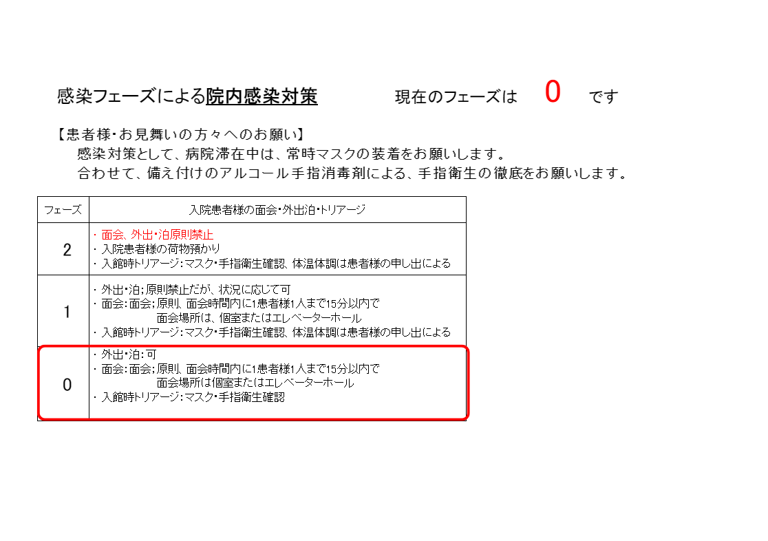当院では、感染フェーズに応じた対策を実施しております。以下の画像をクリックすると、拡大してご覧いただけます。