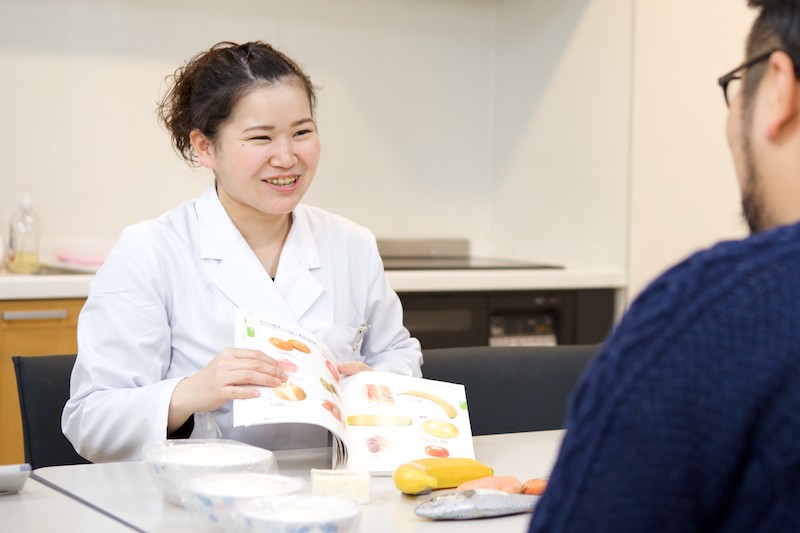 栄養相談が必要な方には医師からの栄養相談依頼を受け、予約日に栄養相談をします。 さらに、検査などで来院時や、次回診察後などにフォローアップ相談を致します。